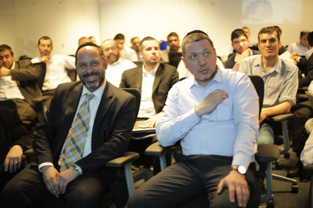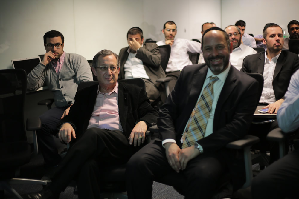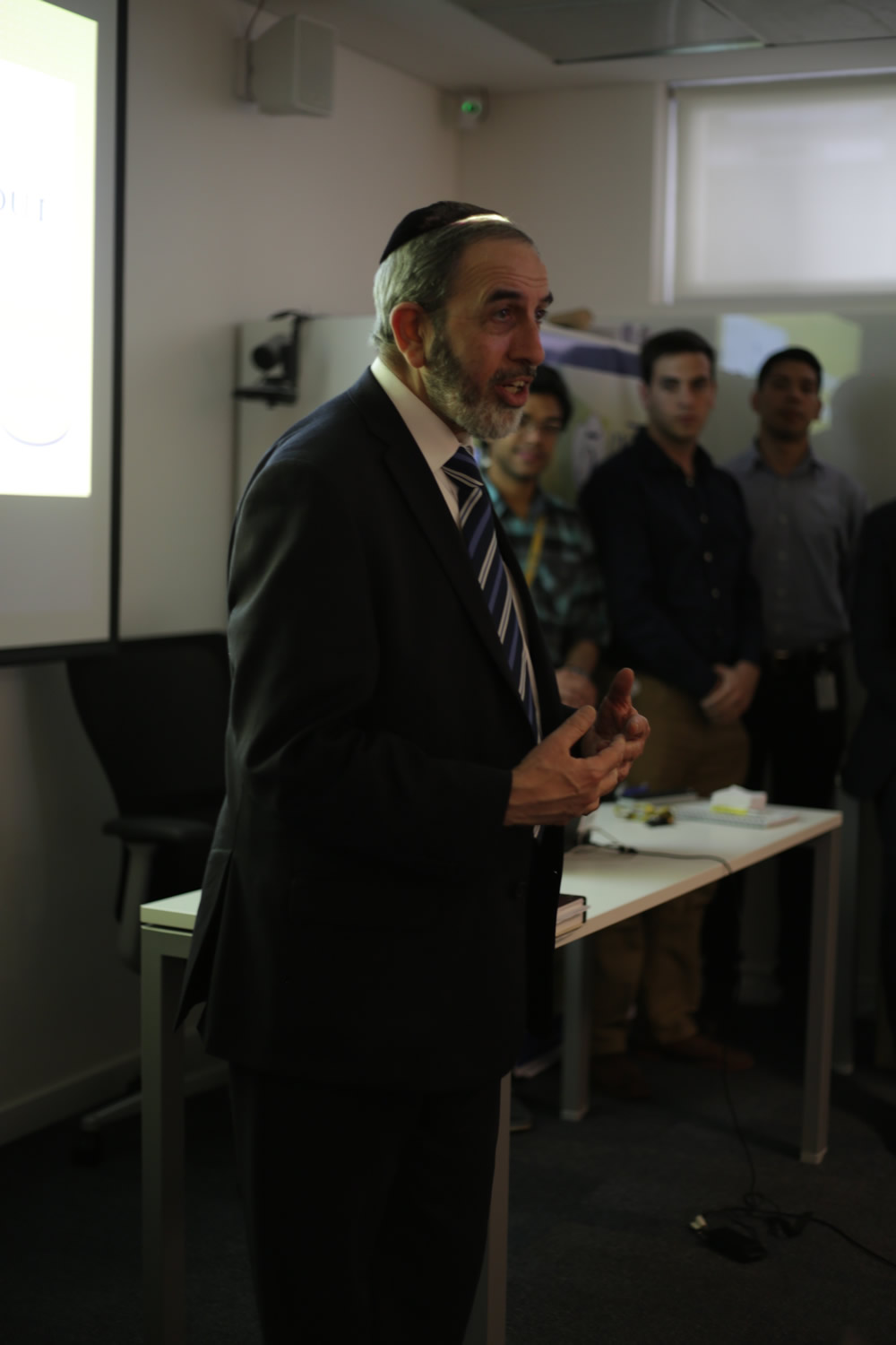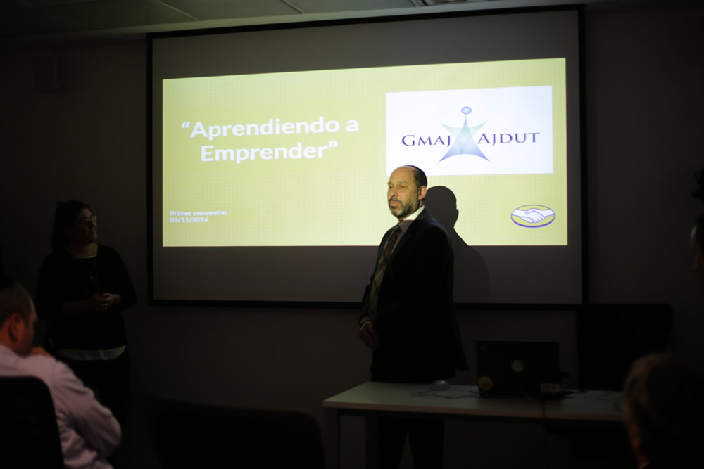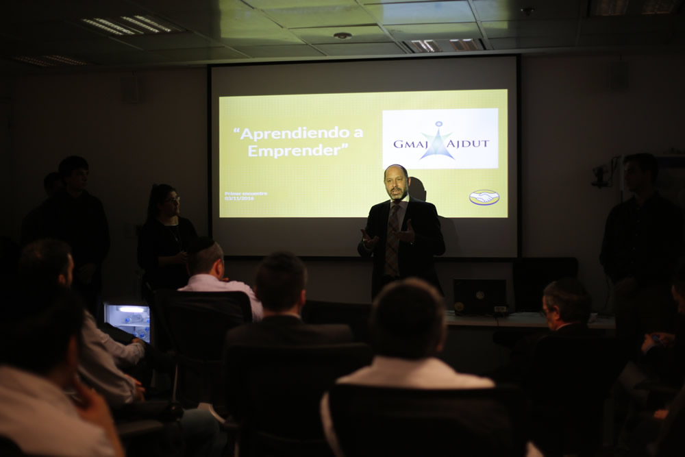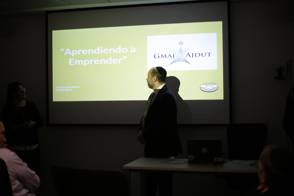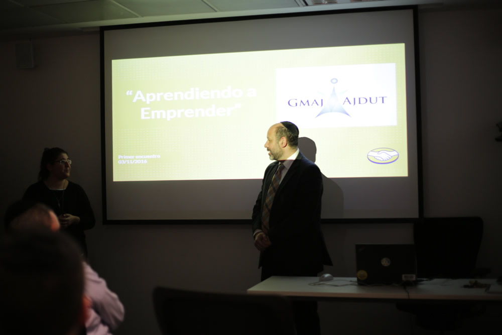 El Rab. Daniel Oppenheimer, el Sr. Tomas Saig presidente de Amia, el Sr. Guillermo Borger ex presidente de AMIA, el Sr. Federico Weil presidente de TGLT y otra autoridades, dieron la apertura oficial y bienvenida a los 32 emprendedores datim que quedaron elegidos para ser parte de este programa “Aprendiendo a Emprender”.